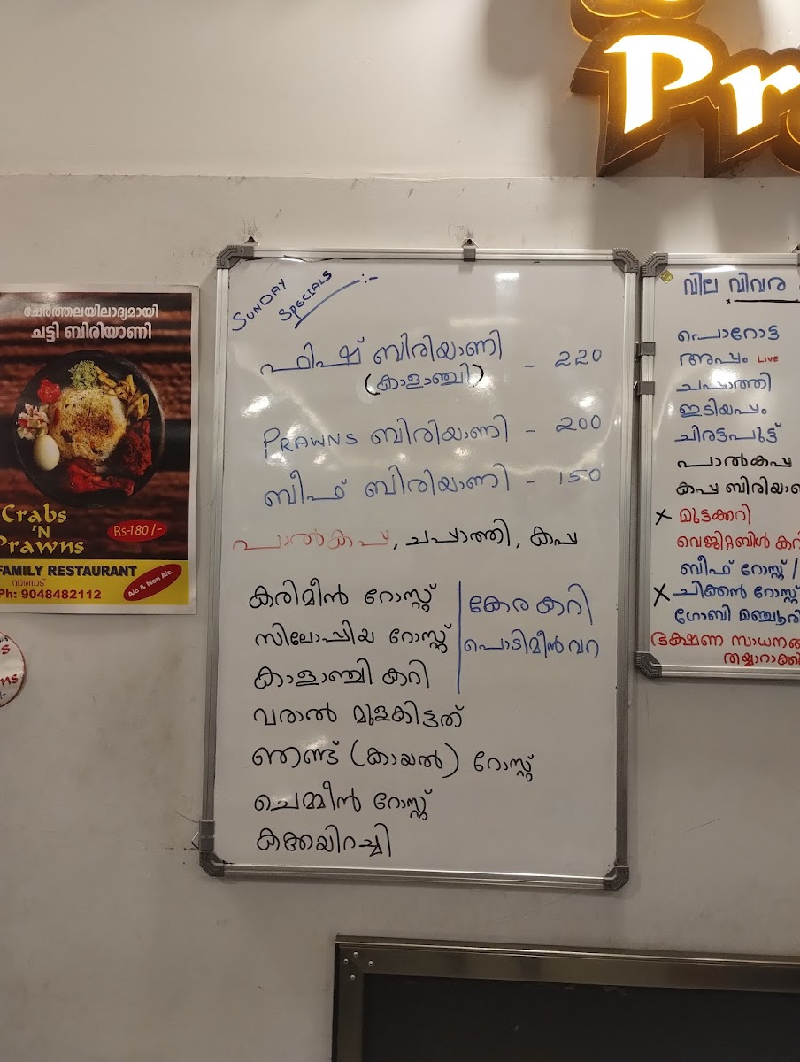 Welcome to CRABS N PRAWNS, a seafood haven nestled in Cherthala, Kerala. The restaurant has garnered attention for its extensive menu, showcasing an array of delectable dishes that highlight the region's rich culinary heritage.